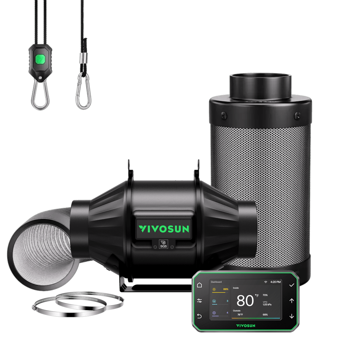 • Bring cleaner, stronger airflow to your grow space or workshop with this all-in-one 4" ventilation kit. Designed for efficiency and convenience, it combines high-performance airflow with advanced odor control in a compact setup that installs in minutes. Perfect for grow tents, indoor gardens, or DIY projects, it keeps temperature stable and air fresh—so your plants and spaces stay healthy year-round with minimal effort.