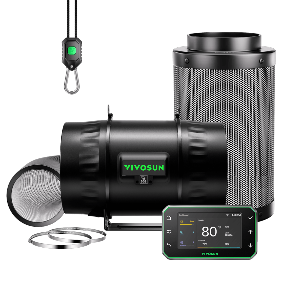 • Bring cleaner, stronger airflow to your grow space or workshop with this all in one 8" ventilation kit. Designed for efficiency and convenience, it combines high performance airflow with advanced odor control in a compact setup that installs in minutes. Perfect for grow tents, indoor gardens, or DIY projects, it keeps temperature stable and air fresh—so your plants and spaces stay healthy year round with minimal effort.